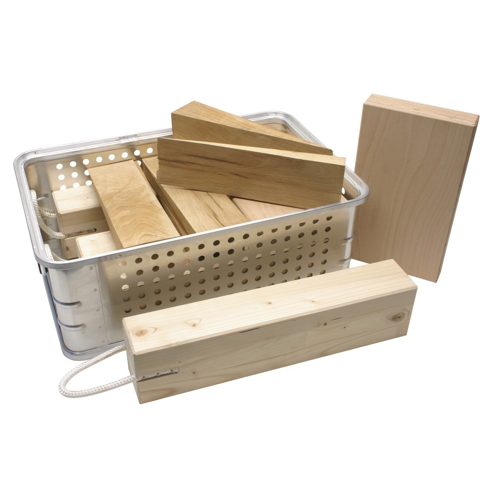 Formhölzer nach DIN 14530-11, verlastet in Dönges Firebox®-Korb made by Zarges nach DIN 14880-1-LM-O-G, 600 x 400 x 220 mm.