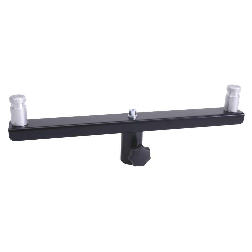 Mit Hilfe dieser Scheinwerfer-Aufnahmebrücke lassen sich zwei HID-, LED- oder Halogen-Flutlichtstrahler auf einem Dreibeinstativ mit Normzapfen befestigen. Die Aufnahmebrücke besteht aus einem Stahlprofil mit zwei Aluminium-Aufnahmezapfen nach DIN sowie einem Adapter aus Stahl zur Befestigung der Brücke auf dem Normzapfen des Stativs. Passend zu allen Dreibeinstativen und Strahlern mit Zapfen/Hülsen nach DIN 14640 .