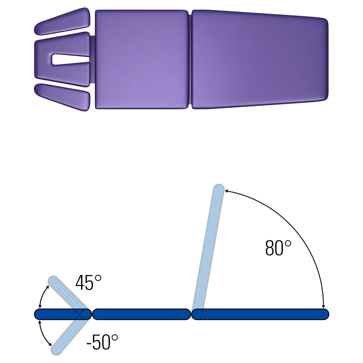 - Kopfteil von -50° bis +45° per Gasfeder verstellbar