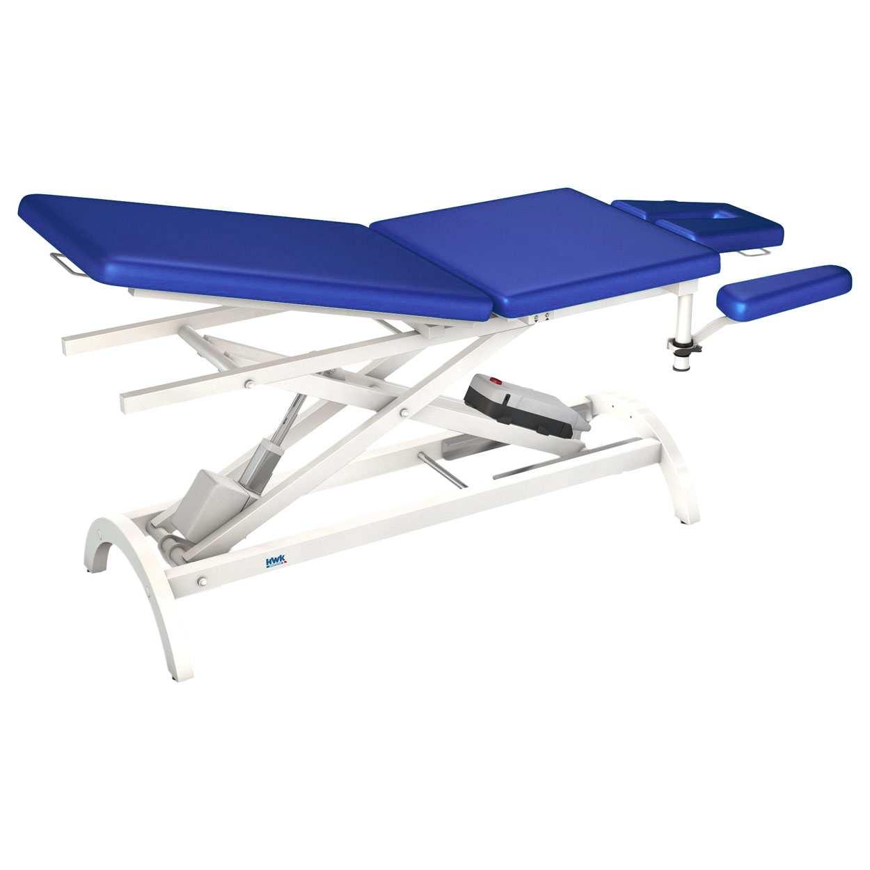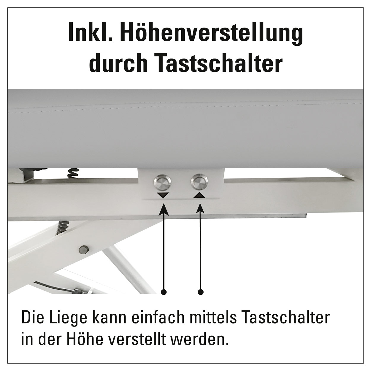 Die elektrische Höhenverstellung ohne horizontalen Versatz erfolgt mittels, beidseitig am Polster befestigter, Schaltleiste und ist stufenlos zu regulieren von 50-96 cm. Dieser Aspekt bietet zusätzlichen Therapiekomfort und wird von Verbrauchern als angenehm empfunden.