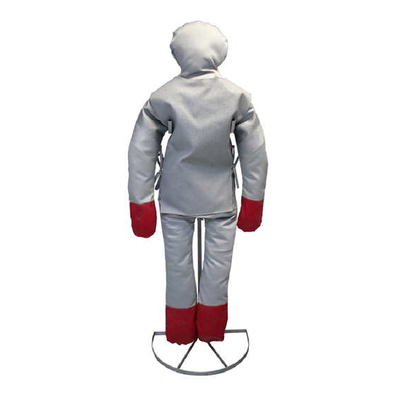 Außenmaterial Silikon, teilweise mit Kevlar® verstärkt, temperaturbeständig bis ca. 600 °C für etwa 30 Minuten, die Puppe ermöglicht realitätsnahe Übungen zum Löschen von brennenden Personen, geeignet für Übungen mit der Löschdecke oder mit Kleinlöschgerät. Um die Lebensdauer der Puppe zu erhöhen, sollte der Brand auf dem mitgelieferten Kittel entzündet werden
