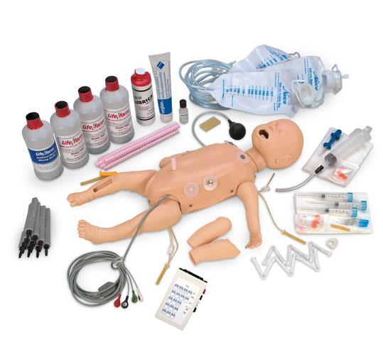 Bietet alle Eigenschaften der CRiSis-Säuglingspuppe R10155-1, dazu den tragbaren interaktiven EKG-Simulator.