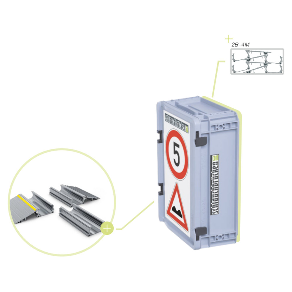 Erweitern Sie Ihr Schlauchbrücken-Modulsystem nach Belieben und passen Sie die Brücke Ihren Bedürfnissen noch direkt am Einsatzort an. Egal welche Überfahrbreite oder wie viele Schläuche Sie benötigen - mit diesem System sind Sie für alle Fälle gerüstet. Die Schlauchbrücken sind konstruiert für Schläuche bis max. 75 mm Durchmesser. Durch die