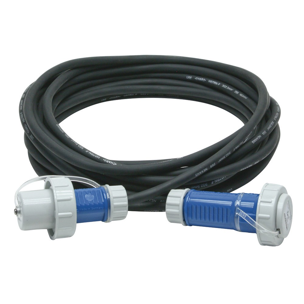 Verlängerungsleitung für die Feuerwehr. Beidseitig mit druckwasserdichten Mennekes Steckverbindungen.