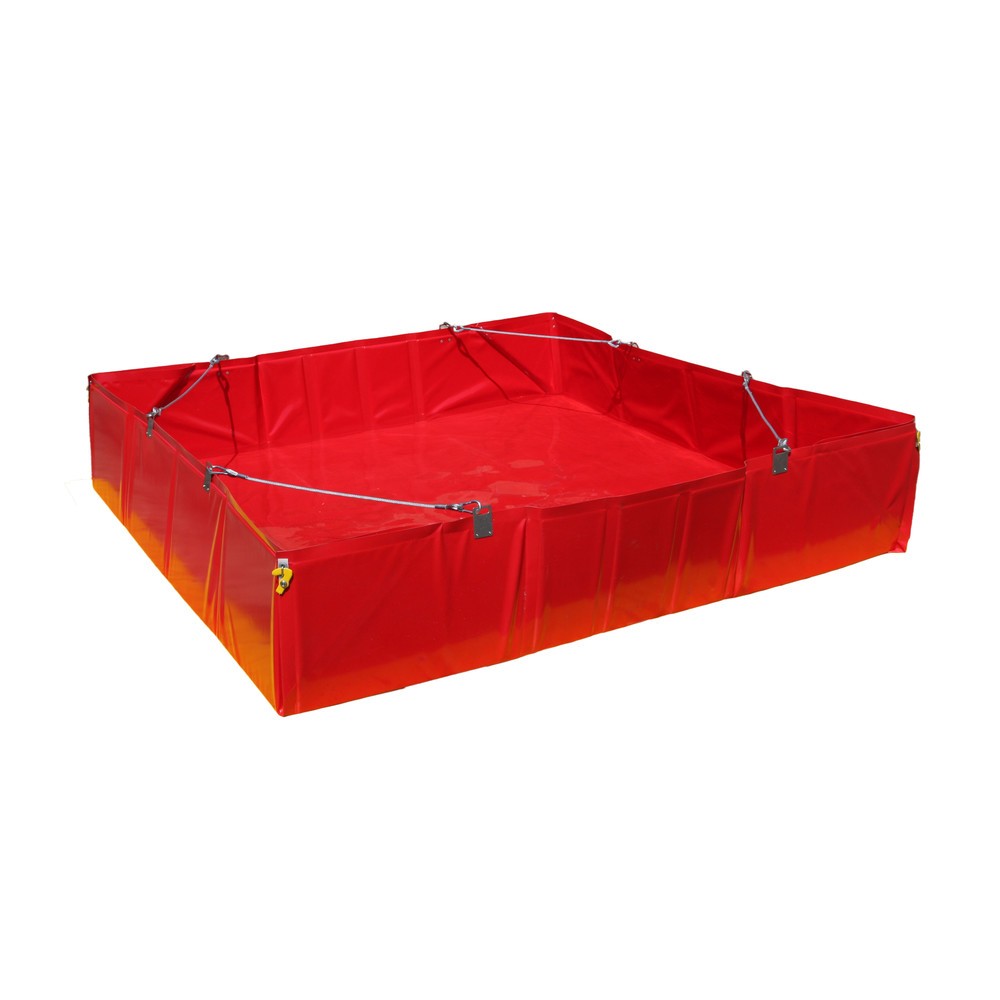 Die Auffangwanne ist für kurzfristige Lagerung der Industrieflüssigkeiten, Erdölprodukte und Chemikalien in Notfällen konzipiert. Dank ihrer einfachen Konstruktion und leichten Handhabung ist sie sofort einsatzbereit auch an schwer zugänglichen Stellen