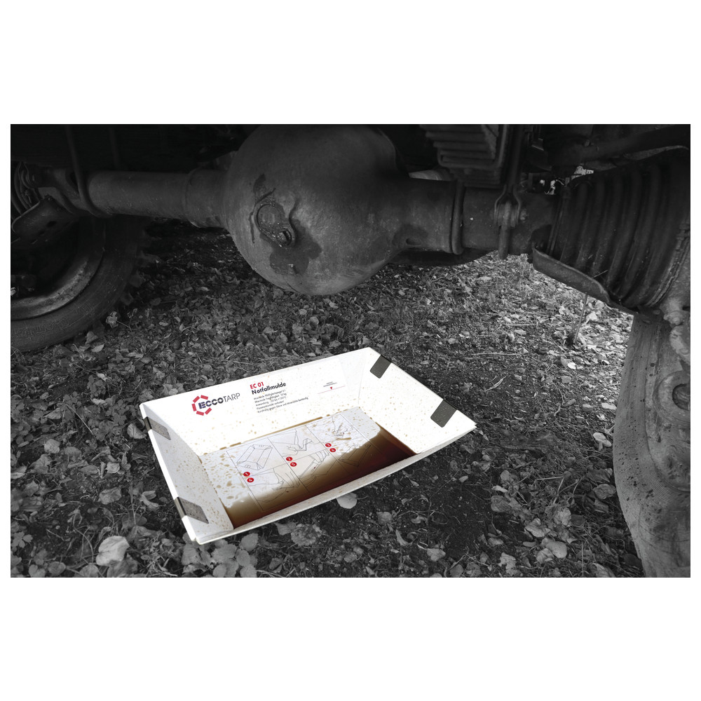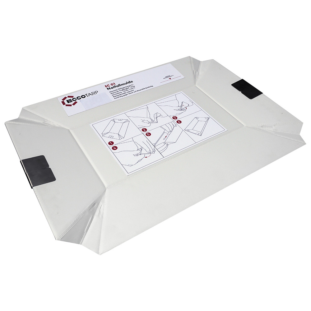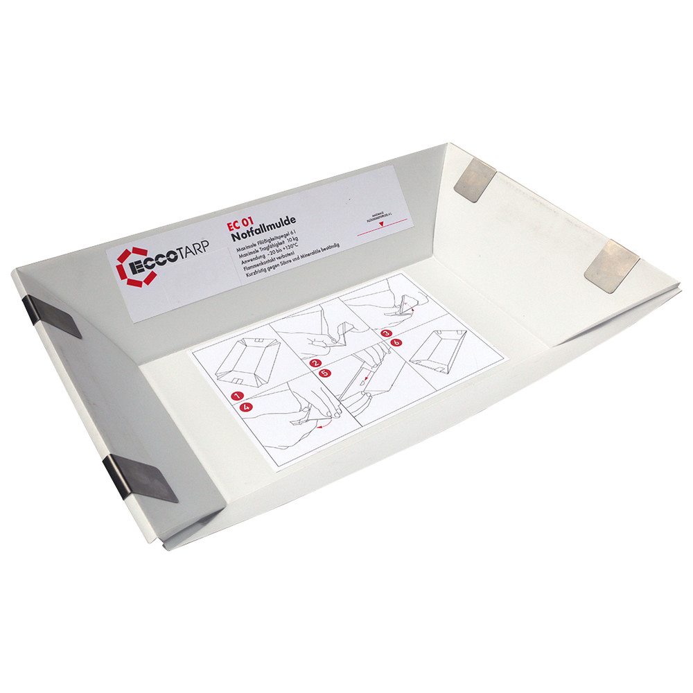 Universelle Notfallmulde für eine kurzzeitige Lagerung von kontaminiertem Material und zum Auffangen von austretenden, gefährlichen Stoffen. Dank der Faltkonstruktion minimiert sich der Platzbedarf zur Lagerung.