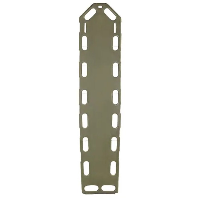 16 große Griffe, rundumlaufend, zum einfachen Patiententransport geeignet. Die Liegefläche ist komfortabel gewölbt, das Fußende ist zur besseren Patientenbergung leicht abgewinkelt. Das Spineboard entspricht der EN 1865-1 und ist auch für die Wasserrettung geeignet, wie auch 100 % röntgenstrahlendurchlässig.