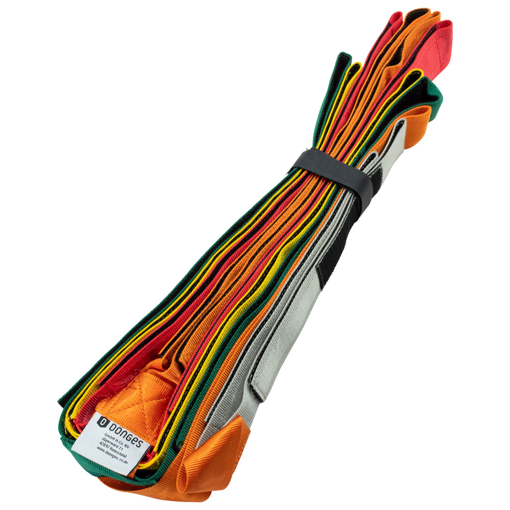 Patienten angepasst werden. Das Neo wird mit Klettverschlüssen fixiert, die Quergurte sind farbcodiert für eine schnelle Zuordnung auf den ersten Blick.
