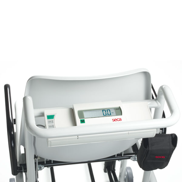 Eine bequeme Sitzschale sorgt für sicheren Halt, die einzeln nach hinten abklappbaren Armlehnen und schwenkbare Fußstützen erhöhen die Bedienungsfreundlichkeit. Mit den hinteren Radfeststellbremsen ist jederzeit ein sicheres Hinsetzen und Aufstehen möglich. Die Positionierung des Anzeigeelementes hinter dem Stuhl erlaubt ein intuitives Arbeiten mit den vielfältigen Funktionen wie TARA, HOLD und BMI. Und mit der seca 360° wireless Funktechnologie können die Messwerte auf Knopfdruck an einen seca Funkdrucker oder PC versendet werden. Diese mobile Stuhlwaage, wahlweise über Netz oder Akku betrieben, leistet überall unschätzbare Hilfe: ob in der Reha, der Orthopädie, der Dialyse, im Bereich der Alten- und Pflegebetreuung. Und mit ihrer feinen Teilung von 50 g bis 150 kg ist sie speziell für die Kinder- und Jugendmedizin ausgesprochen wertvoll. So können z. B. Kleinkinder, die noch nicht stehen können, bequem im Sitzen gewogen werden. Praktisch: die mitgelieferte Tasche seca 471 lagert das Netzteil direkt an der Waage. - Tragkraft: 300 kg - Teilung: 50 g < 150 kg > 100 g < 250 kg > 200 g - Funktionen: Abschaltautomatik, TARA, Pre-TARA, HOLD, Auto-HOLD, BMI, Auto-CLEAR, Auto-Wägebereichsumschaltung, einstellbare Dämpfung, SEND/PRINT - Maße (BxHxT): 563 x 897 x 978 mm - Eigengewicht: 24,5 kg - Stromversorgung: Netzgerät/Akku - Eichklasse III - Systemfähig mit seca 360° wireless: seca 466, seca 465, seca 456, seca 456 wa, seca analytics 115, seca emr flash 101, seca 274, seca 264 - Zubehör (optional): Netzteil seca 683210266009