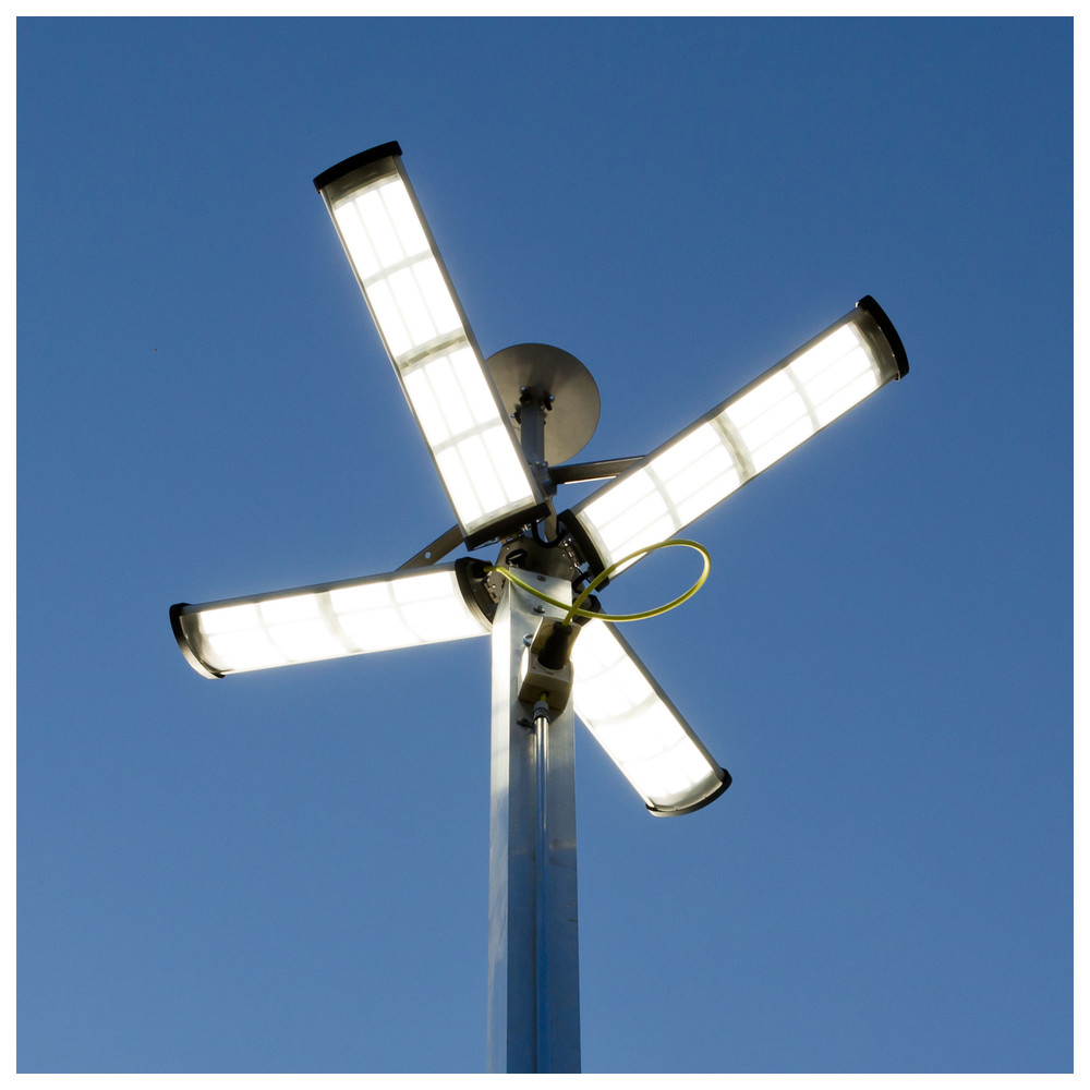 Die konsequente Weiterentwicklung der erfolgreichen Aldebaran 360º setzt auf hohe Flexibilität und effiziente Nutzung des ultrahellen LED Lichts. Die Möglichkeit, zwischen 360º Rundumlicht und nach unten gerichteter Umfeldbeleuchtung nahezu stufenlos wählen zu können, eröffnet ein immens breites Einsatzspektrum. Ob auf Baustellen, bei Rettungseinsätzen oder auf Veranstaltungen. Licht effektiv zu nutzen, ist die Königsdisziplin der 360º Flex LED.